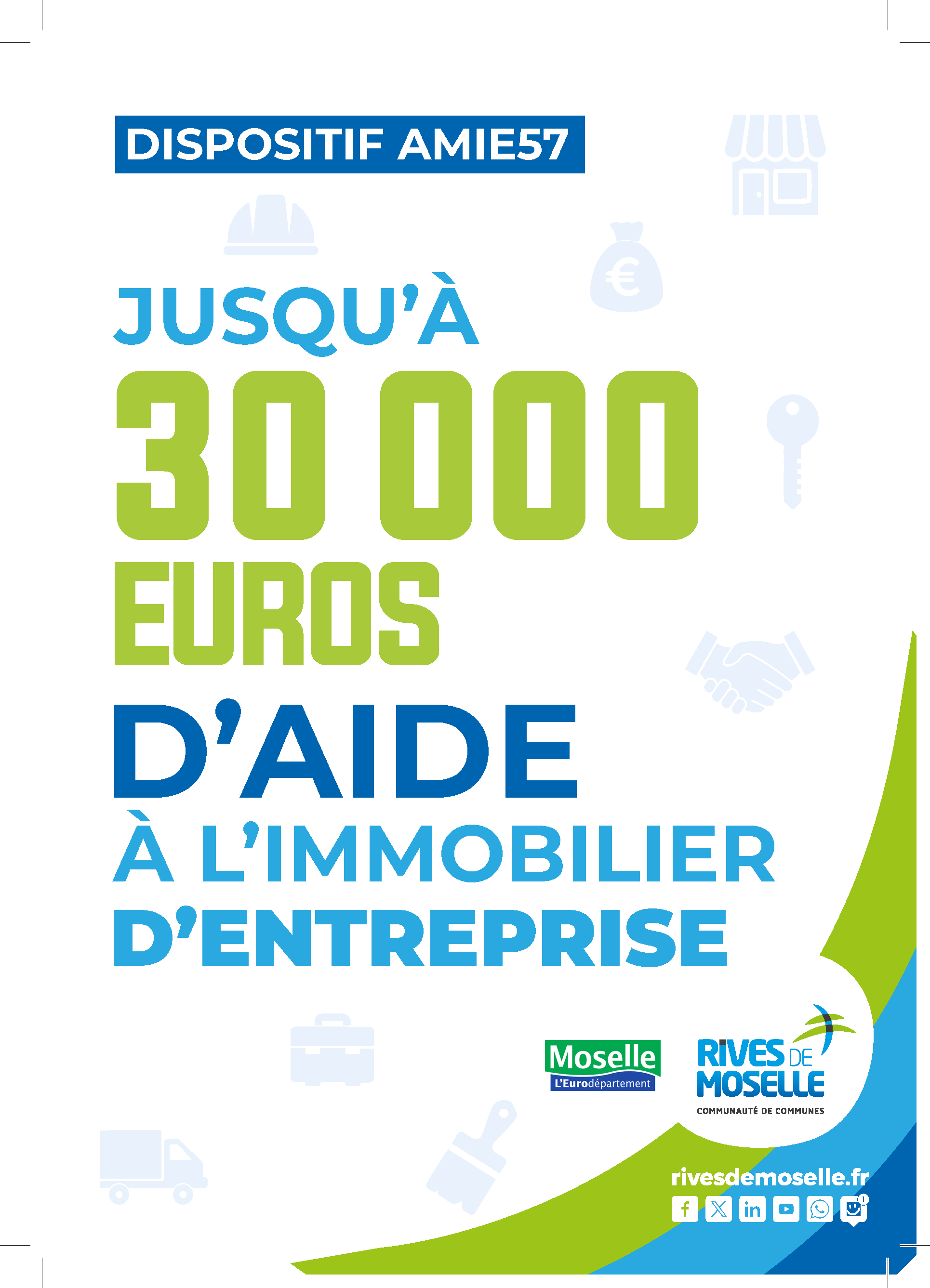 Afin de soutenir les entreprises qui investissent dans l’immobilier dans le cadre de la création ou de l’extension d’une activité, le Département de la Moselle et la Communauté de Communes Rives de Moselle financent ce dispositif d’aide mosellane à l’immobilier d’entreprise (AMIE 57) à parts égales.